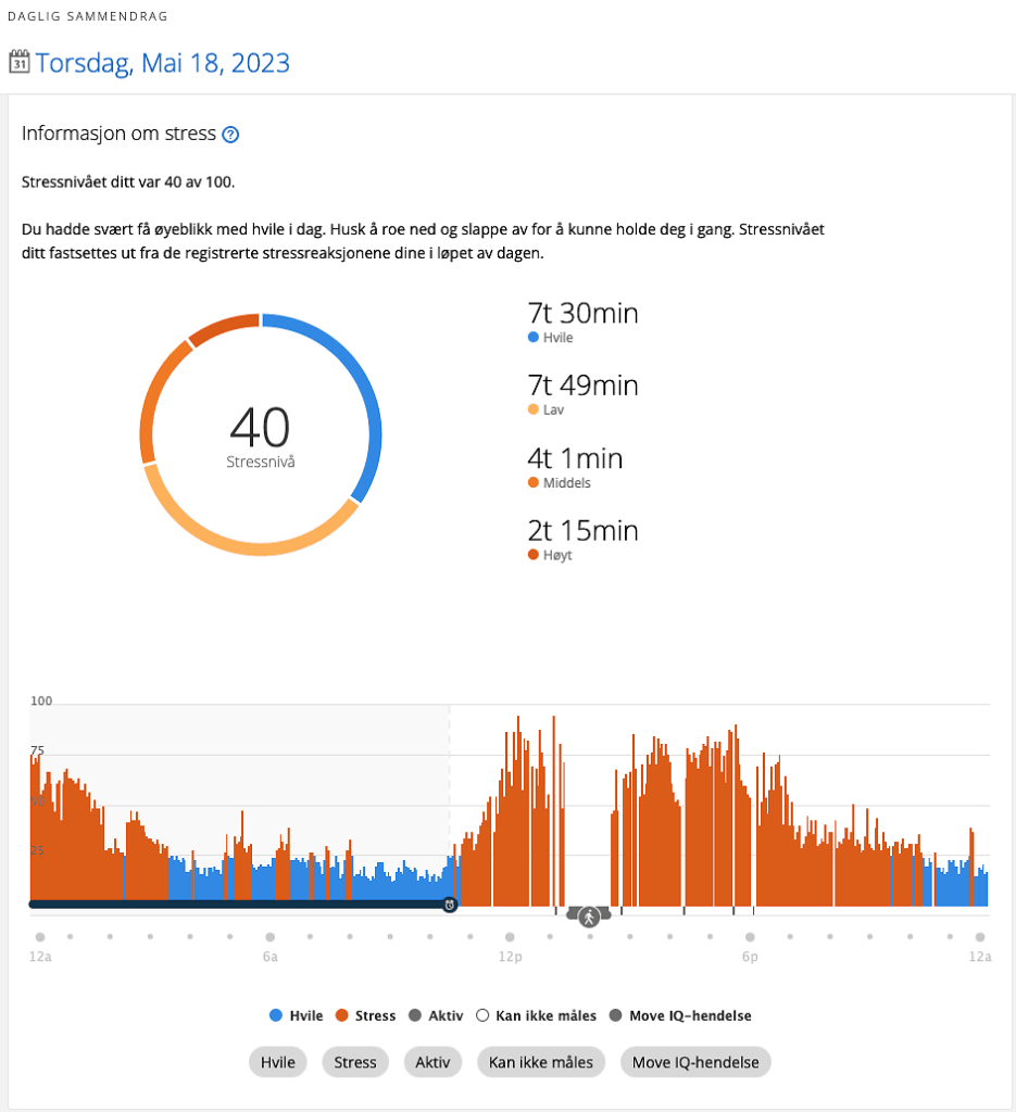 – Her ser jeg at du har 5% igjen av bodybatteryen din kl. 17:00 på en lørdag. Men da hviler du ikke. Her tipper jeg du har spilt golf og tatt noen øl etterpå?