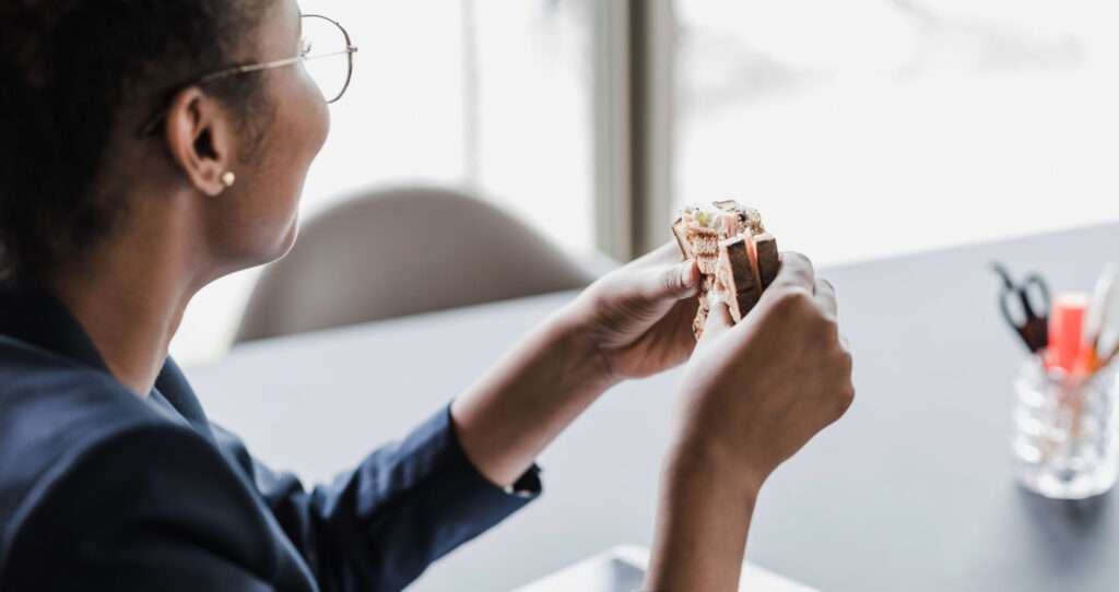 – Mange lar det gå lenge mellom lunsj og middag, noe som resulterer i at man er sulten på jobb og kommer hjem sulten. Når vi er sultne, er det lettere å falle for fristelser, ta usunne valg og/eller stor porsjonsstørrelse.