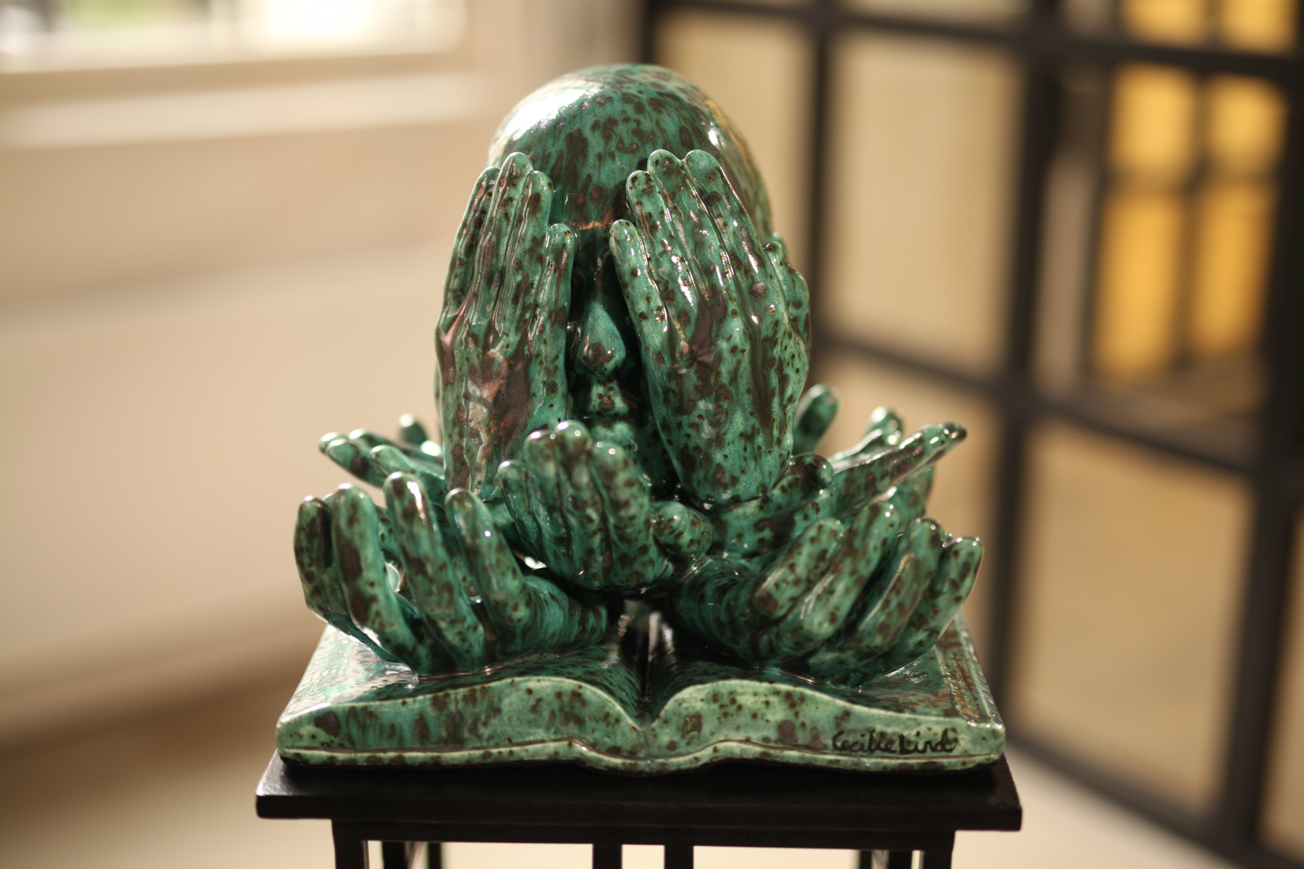 Cecilie Lind landet på en skulptur med hender som holder et hode oppe. er glad for å kunne være med på å åpne flere folks øyne for det viktige fagforeningsarbeidet gjennom «Kunsten å være norsk».