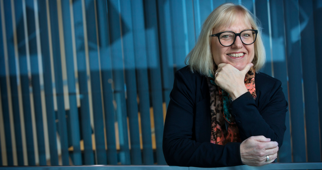– Fagforeningenes rolle er blitt viktigere i koronakrisen. Trygghet er et ord jeg vil fremheve, sier leder i Finansforbundet, Vigdis Mathisen. Til det får hun kunstnerisk drahjelp.